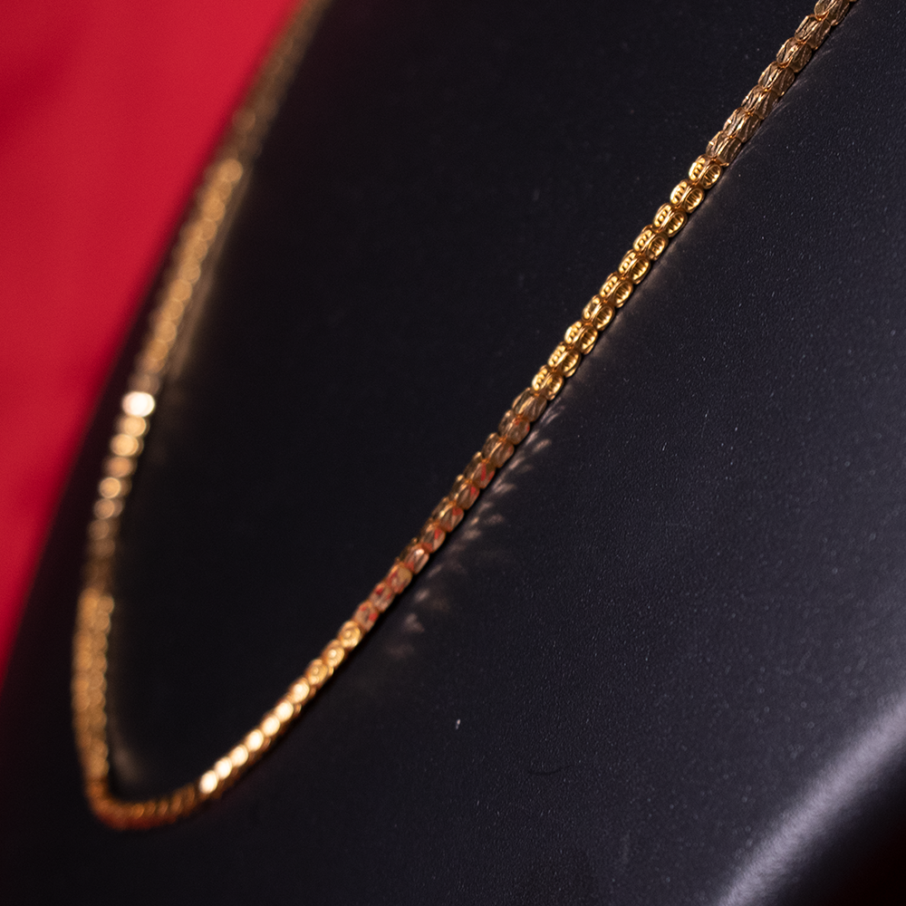 A gold chain is a versatile and stylish piece of jewelry that blends tradition with modern fashion. Made from high-purity gold, it offers durability, shine, and a timeless appeal.