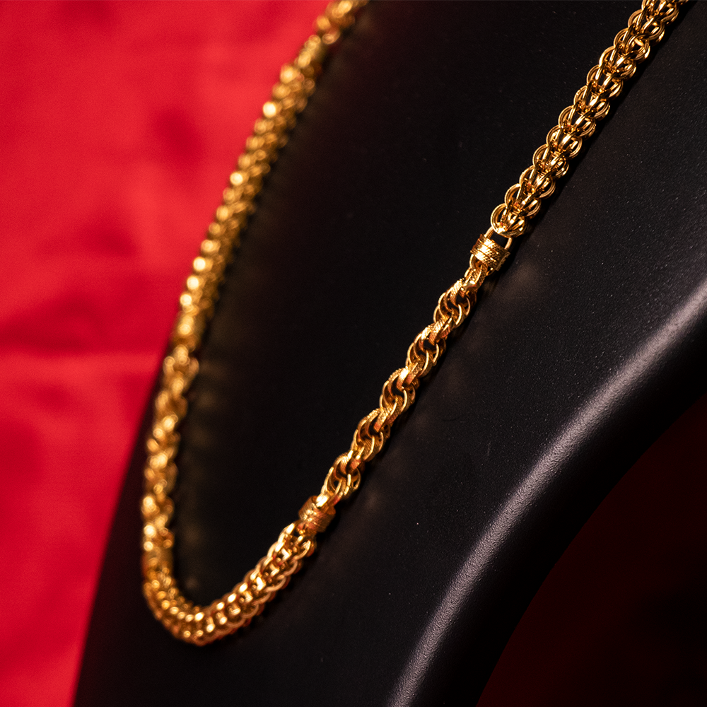 A gold chain is a versatile and stylish piece of jewelry that blends tradition with modern fashion. Made from high-purity gold, it offers durability, shine, and a timeless appeal.
